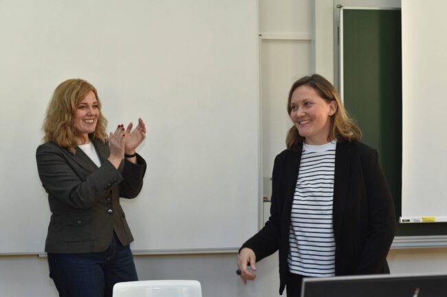 Ein voller HS 386 und großes Interesse: Dr. Maria Schreiber präsentierte ihre Habilitation zu Social-Media-Inhalten und ihrer Bedeutung für das mentale Wohlbefinden junger Erwachsener.